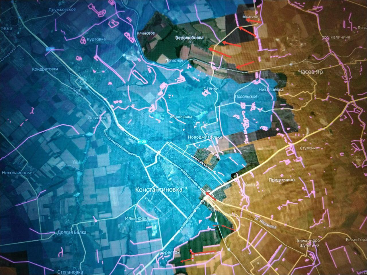 Северо-западнее Часов Яра наши подразделения восстановили контроль над Майским и восточной частью Веролюбовки.