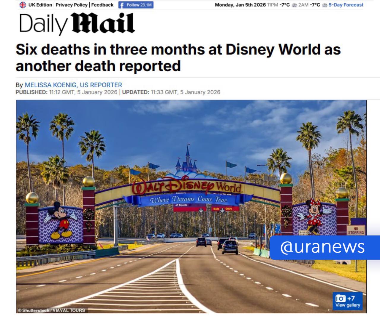 «Самое счастливое место на Земле вновь постигла трагедия — в парке развлечений "Мир Уолта Диснея" обнаружен шестой погибший за последние месяцы... Эта шокирующая смерть стала в тематическом парке шестой всего за три месяца», — говорится в статье.