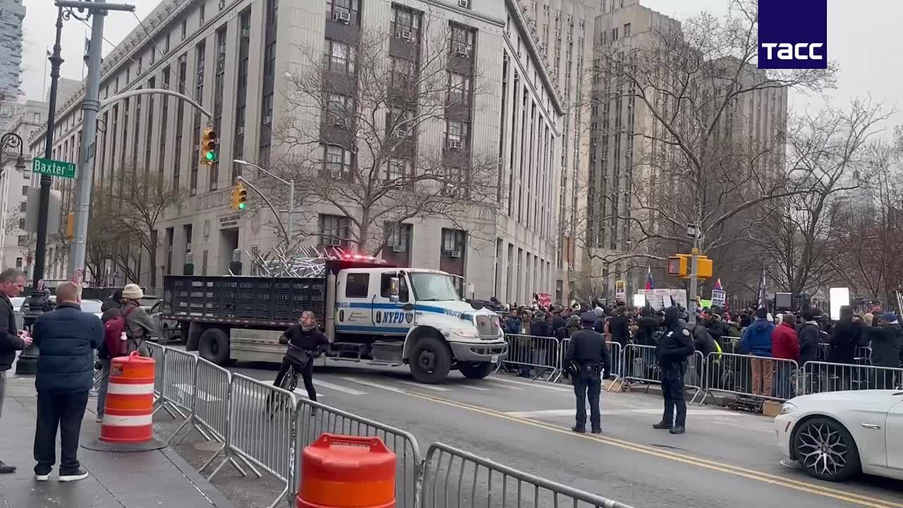 Демонстранты продолжают протестовать возле суда на Манхэттене, куда ранее доставили Мадуро. Полиция устанавливает дополнительные ограждения.