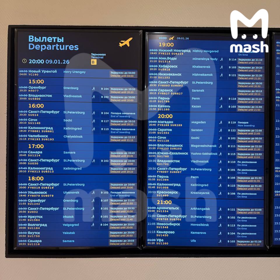 По данным Mash, в Шереметьево сняли рейсы в Минск, Минводы и Гомель, ещё 108 — висят в задержках. В списке Магадан, Пекин, Баку, Уфа, Казань, Питер, Омск.