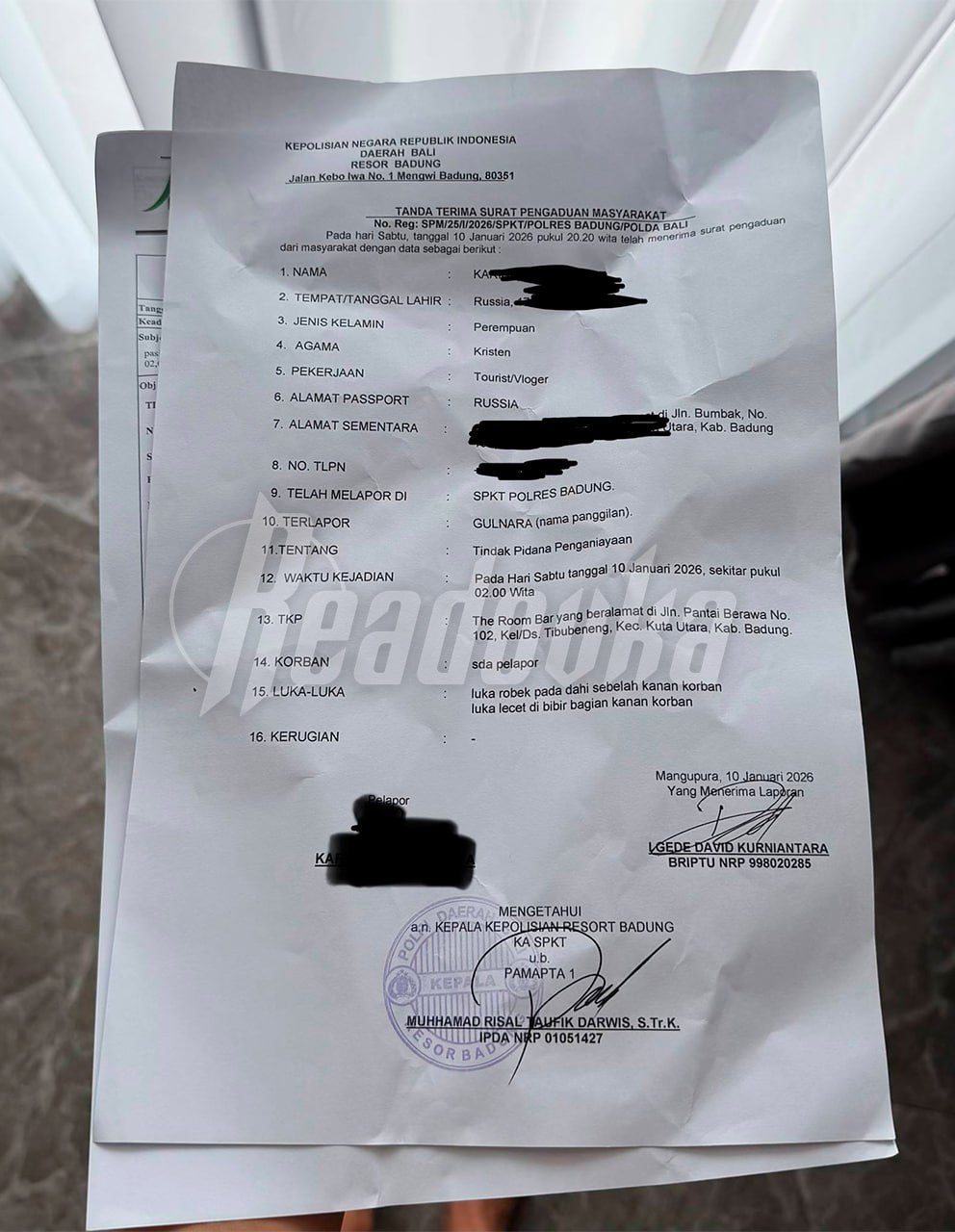 Несколько россиянок отдыхали в одном из ресторанов на Бали и спокойно проводили там время. В этот же момент за соседним столом находилась другая компания, предположительно, русскоговорящая, в которой ругались девушка и мужчина. Через время россиянки собрались домой, и как только они направились к выходу, в голову москвичке прилетел тупой предмет — предположительно, это был светильник или стеклянная бутылка, рассказывает сама женщина.