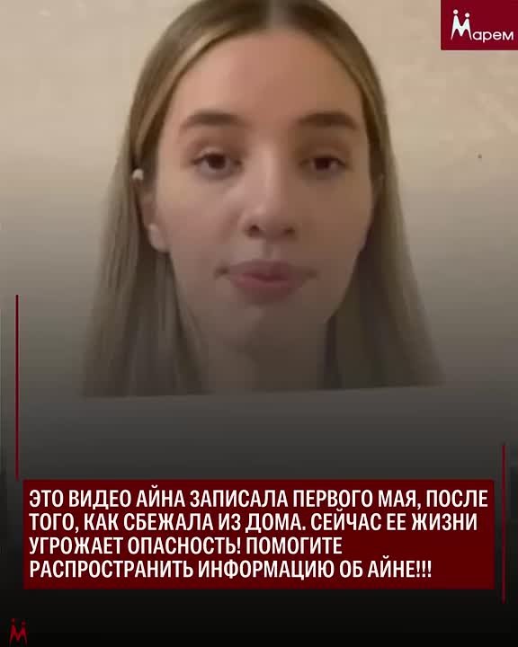 Задержанная — инвалид по зрению. Она родилась в многодетной малообеспеченной семье, а после одного из эпизодов насилия серьезно заболела и 8 месяцев не выходила из дома, утверждают в «Марем». В апреле, когда Айна решилась на побег, она записала видеообращение и просила не искать ее. По словам девушки, возвращение домой может угрожать ее безопасности и здоровью.