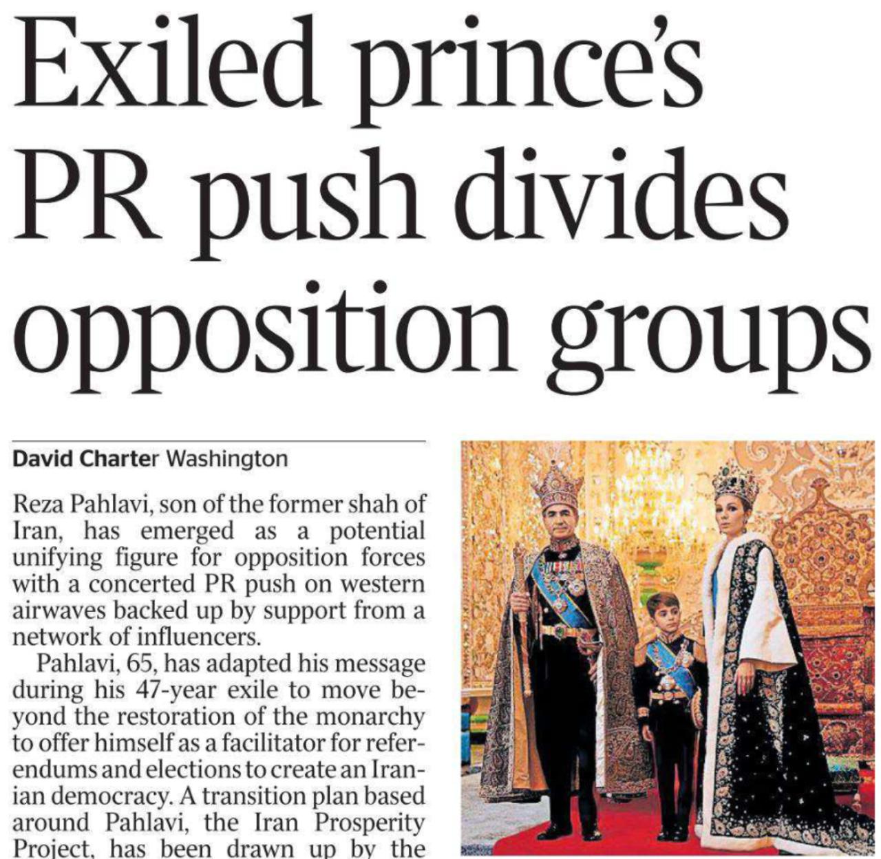 Как я писал, британцы очень активно раскручивают в мировых СМИ «наследника иранского престола» Реза Пехлеви как будущего лидера «демократического Ирана». Но вот The Times вынуждена признать, что навязчивый пиар «недошаха» расколол оппозицию и напугал многих противников нынешней власти.