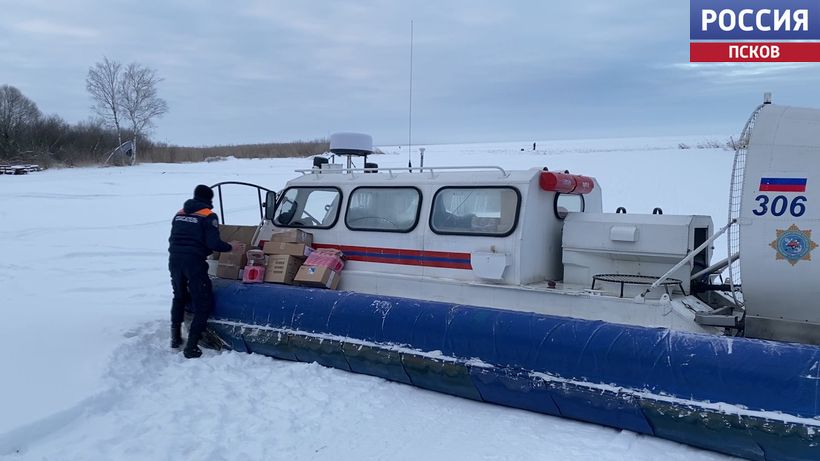 Спасатели оказали помощь жителям острова Залита в Псковском озере. На катере на воздушной подушке они доставили товары первой необходимости, продукты питания и почту. Этот вид техники специалисты использовали не случайно - для другого вида транспорта лед в данное время слишком ненадежный. А судно на воздушной подушке может с легкостью преодолеть и глубокий снег, и разломы, и проталины.