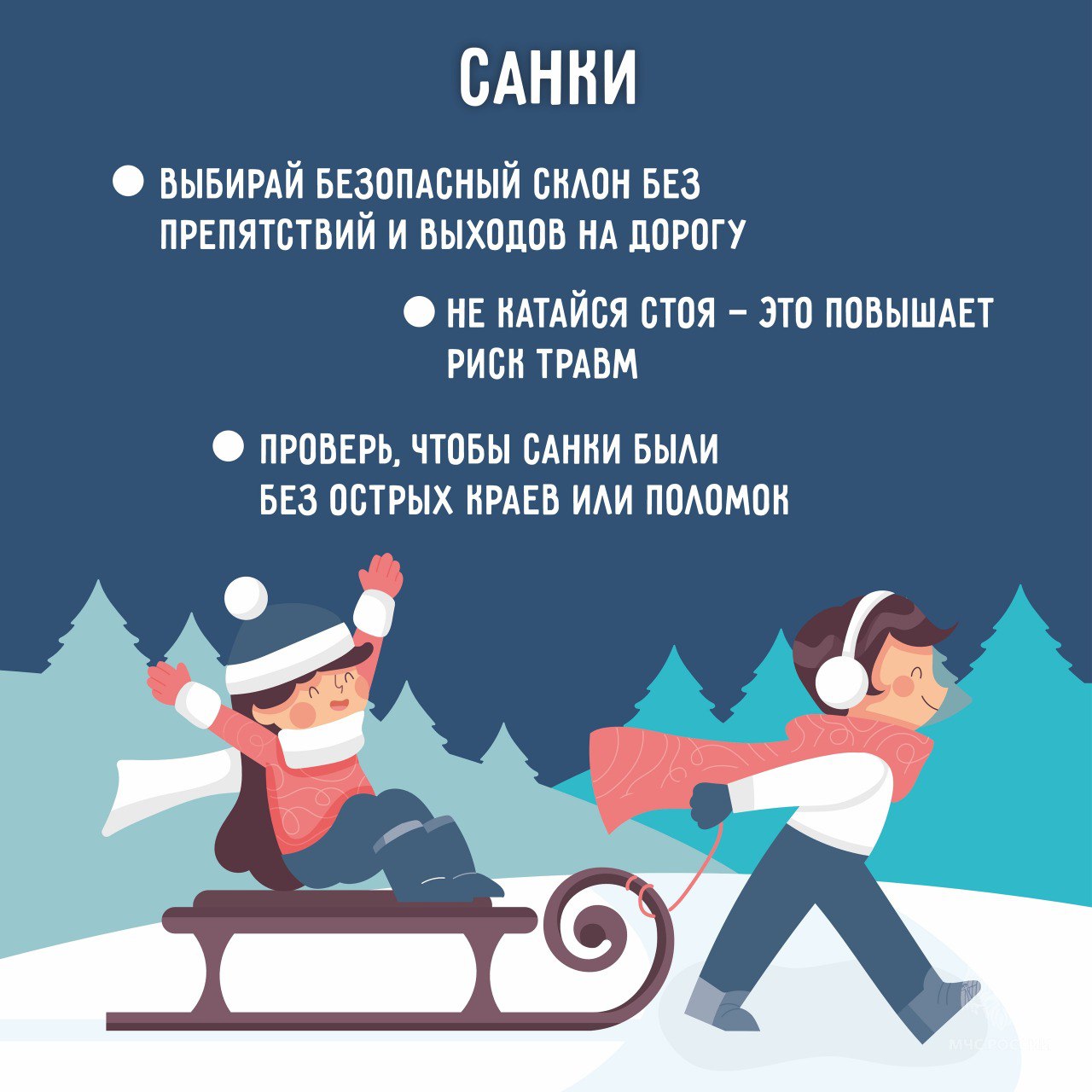 Санки: даже такое простое развлечение требует внимания. Горки должны быть без препятствий и не выходить на проезжую часть. Категорически запрещено кататься стоя на санках – это залог безопасного спуска.