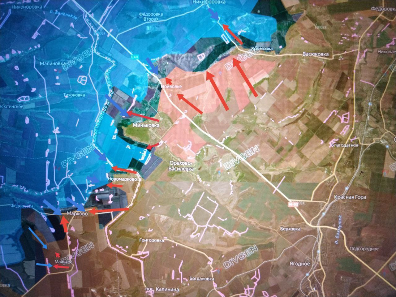 Подразделения ГрВ "Юг", в т.ч. и "Доброкора" ведут ожесточённые встречные бои в районе Марково, Майского иВеролюбовки и продвинулись северо-восточнее.