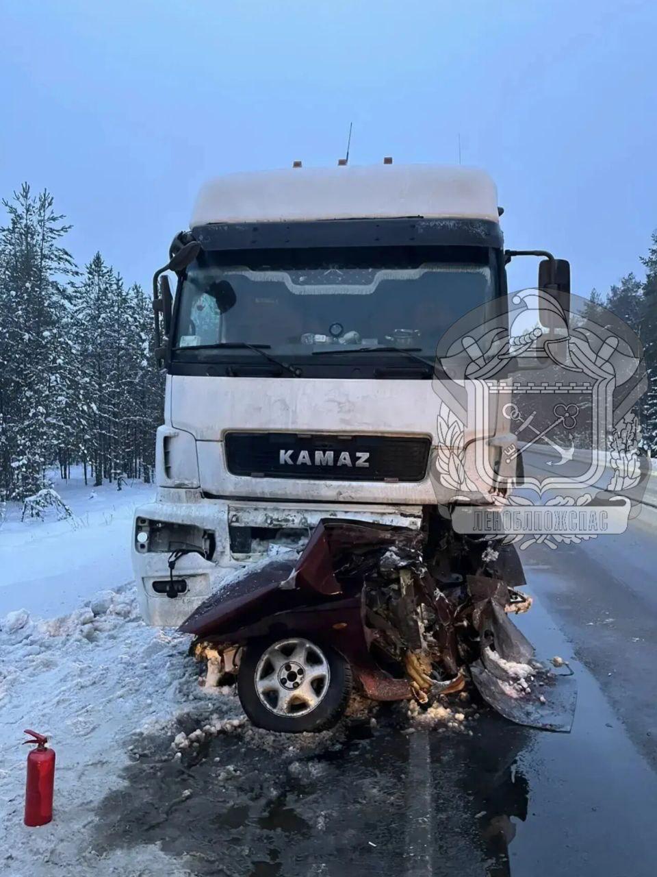 Смертельное ДТП с грузовиком в Ленобласти: «КамАЗ» смял легковушку на трассе Р-21 «Кола» .