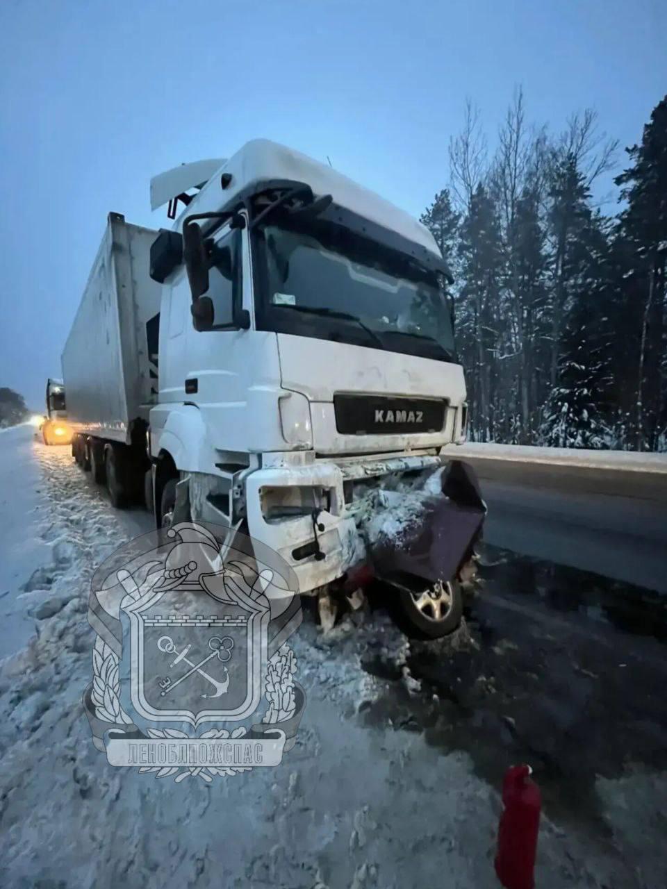 Смертельное ДТП с грузовиком в Ленобласти: «КамАЗ» смял легковушку на трассе Р-21 «Кола»