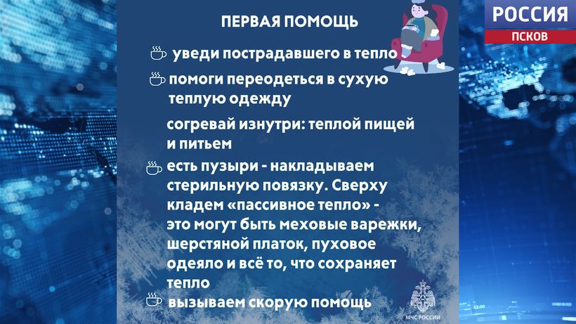 В связи с сильным устойчивым похолоданием спасатели напомнили, как избежать обморожения. Для этого нужно носить свободную одежду и обувь. Обязательно надевать варежки, теплые носки и шапку. Ограничить употребление спиртных напитков, не стоять долго на одном месте.