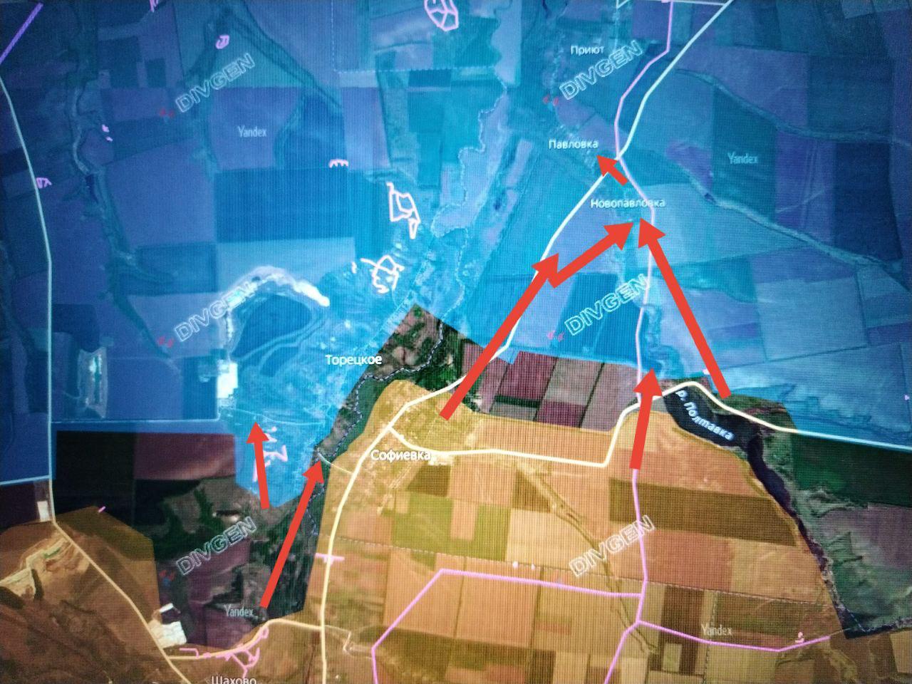 Северо-восточнее ВС РФ ведут бои за Торецкое. Севернее и северо-восточнее Артёмовки (Софиевки) наши подразделения вышли к Новопавловке и выбили ВСУ из неё. Идёт закрепление и начались бои за соседнюю Павловку. До Дружковки — порядка 9 км...