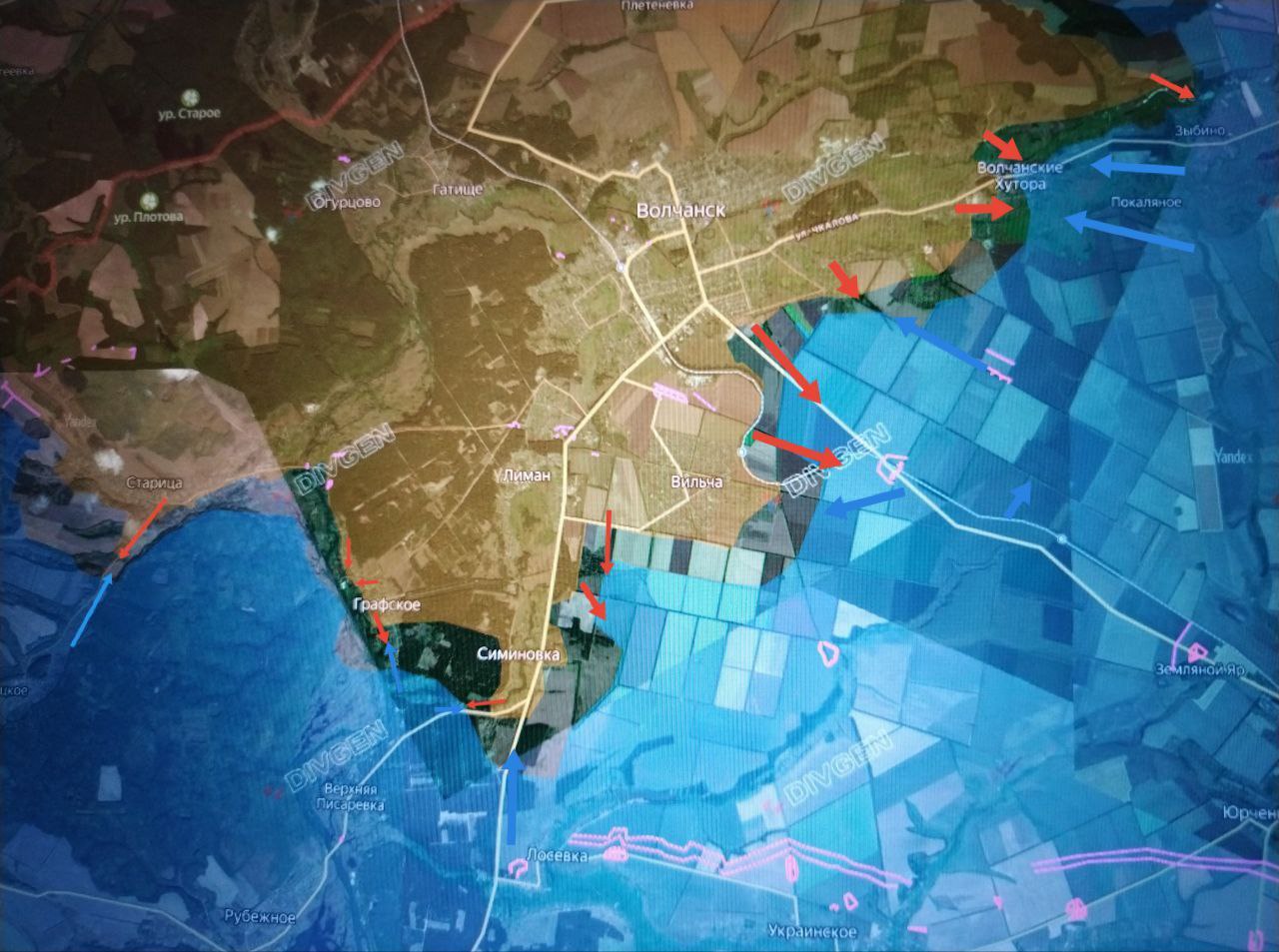 ВС РФ продолжают теснить противника вдоль дороги на Белый Колодезь. Последний является ключевым узлом обороны ВСУ. С опорой на него противник обороняется и контратакует в направлении Волчанска, Вильчи и Волчанских Хуторов.