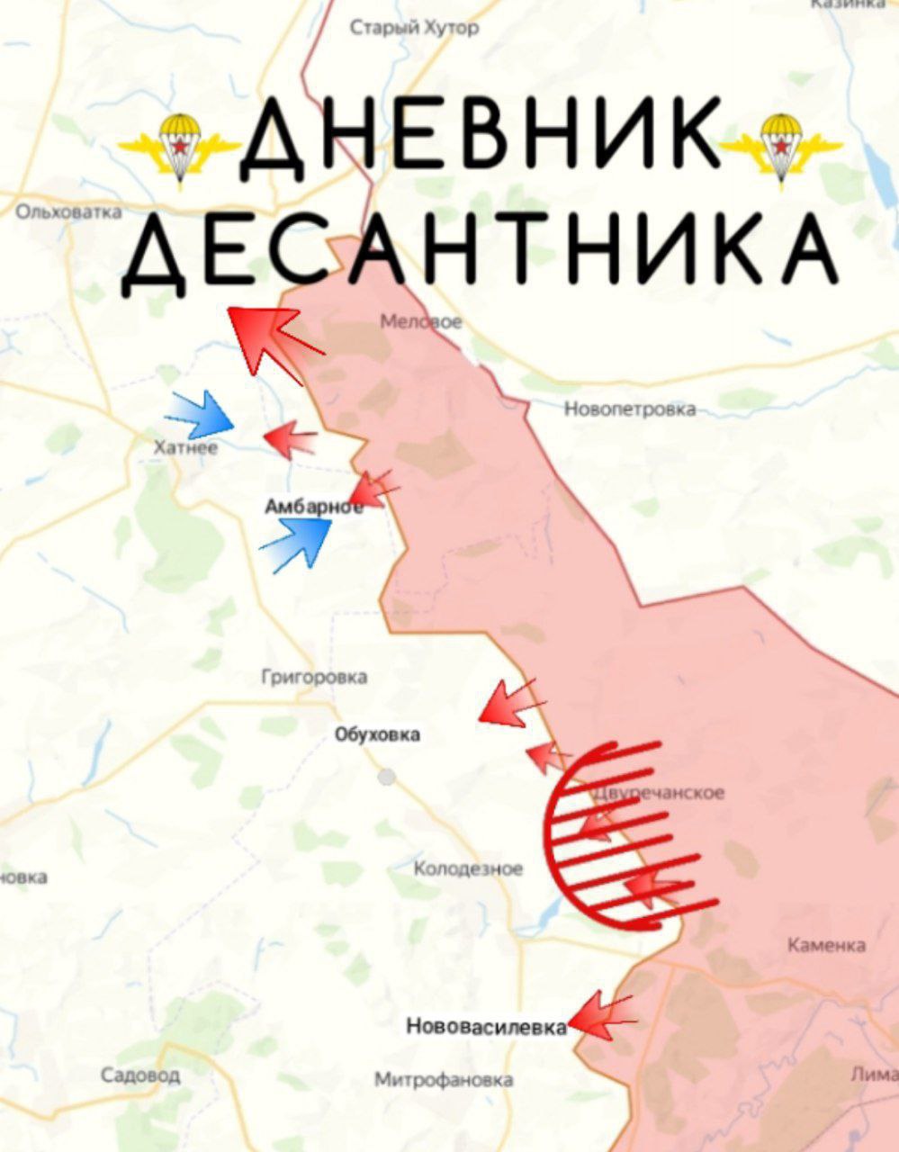 Кроме того на подступах к населенным пунктам Хатнее и Амбарное наши штурмовые группы выдавливают врага, а в направлении населенных пунктов Ольховатка, Обуховка и Нововасильевка наши бойцы продвигаются.