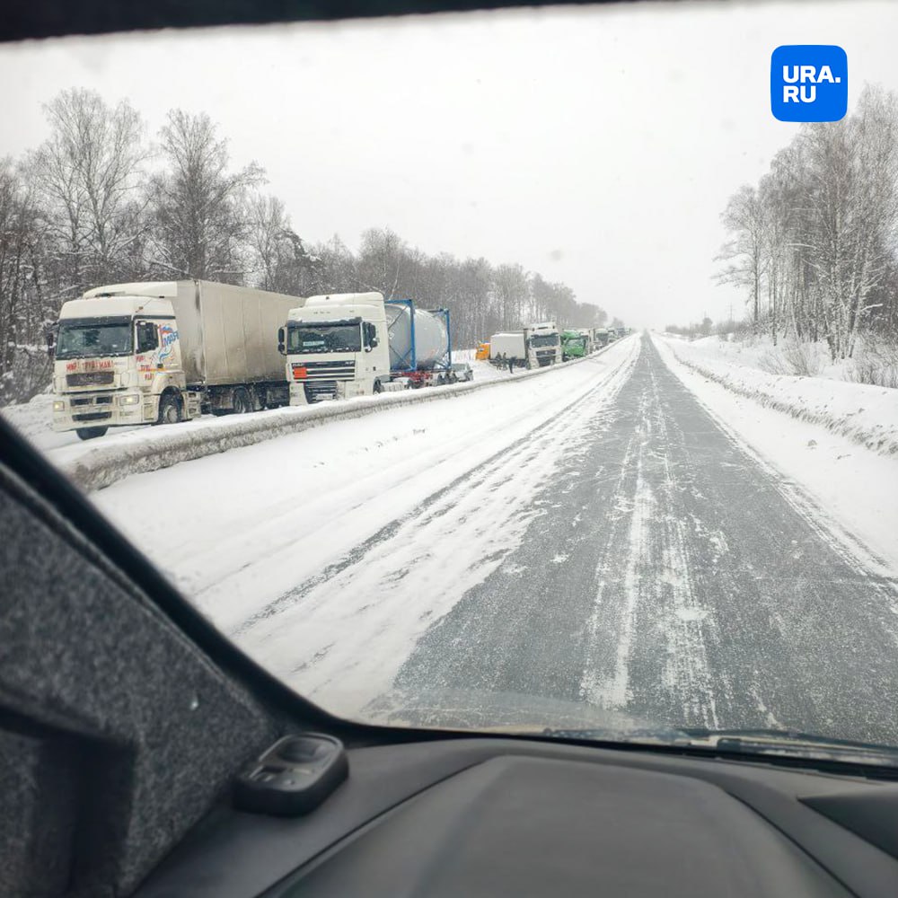Массовая авария произошла на трассе М7 в Нижегородской области. Больше десяти машин столкнулись из-за сильного снегопада, среди них есть большегрузы.