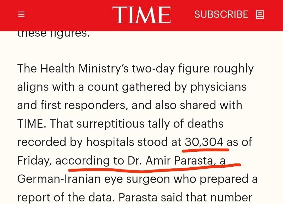 Журнал Time ссылается на немецко-иранского хирурга-офтальмолога и правозащитника Амира Парасту как на источник указанной статистики.