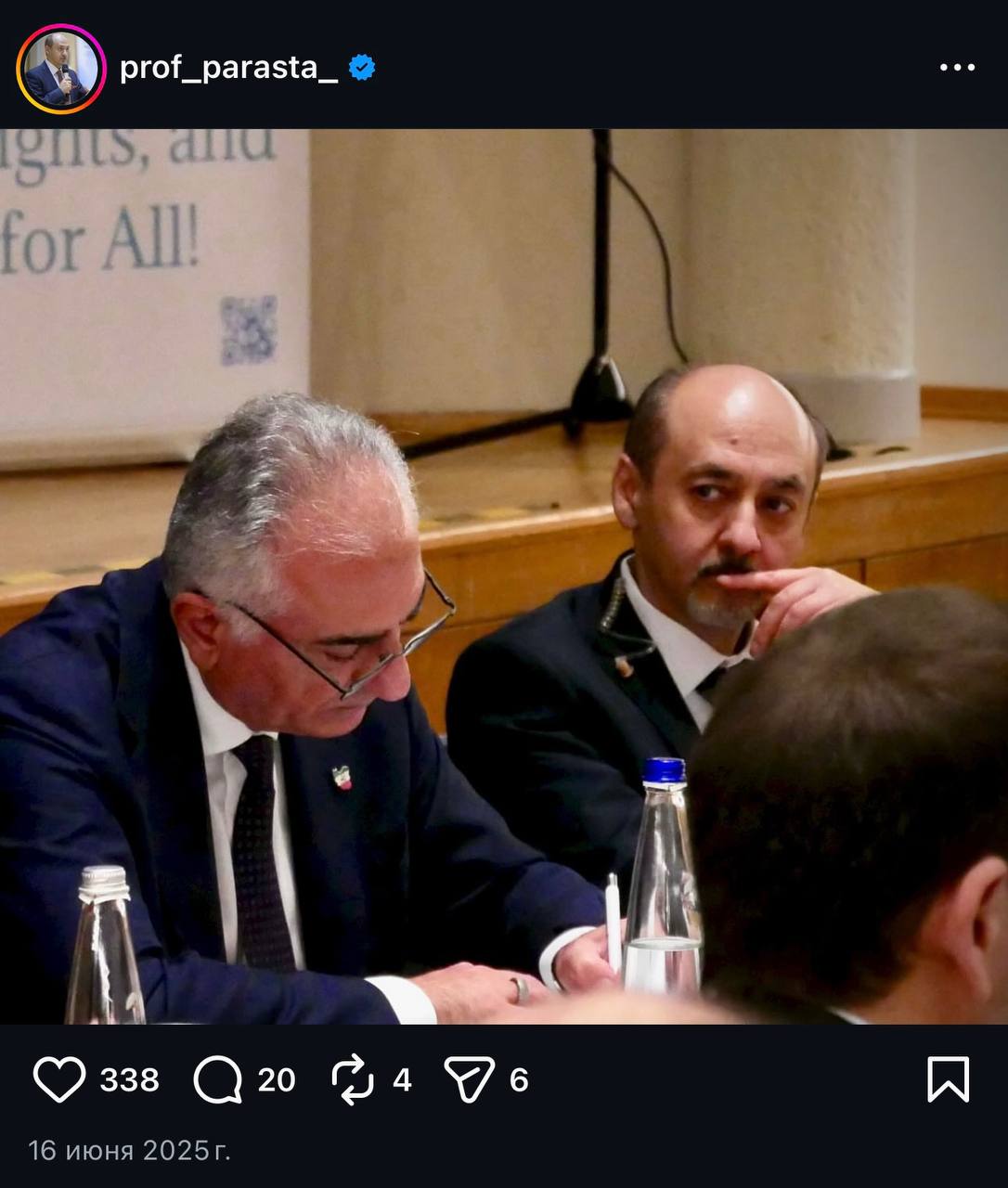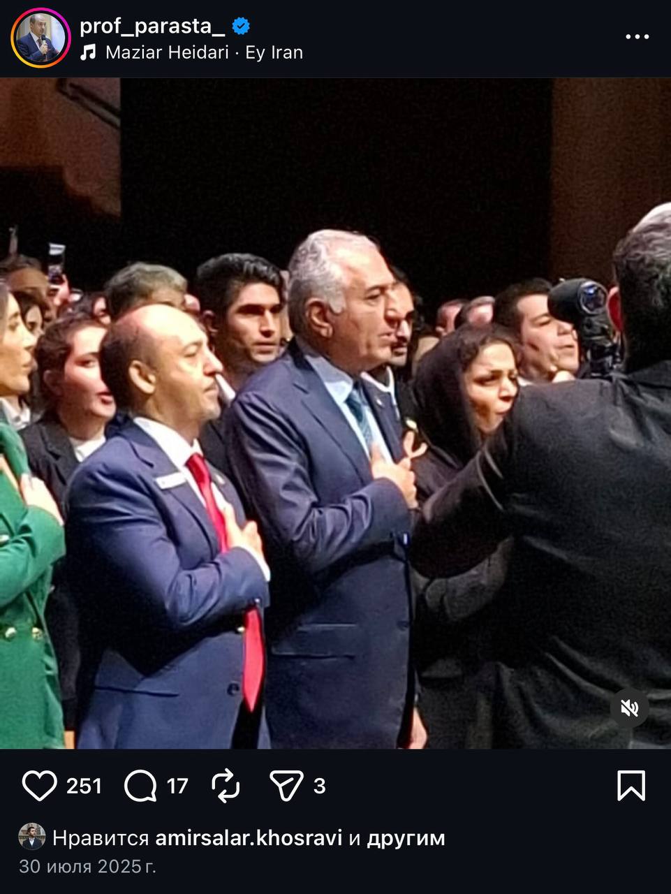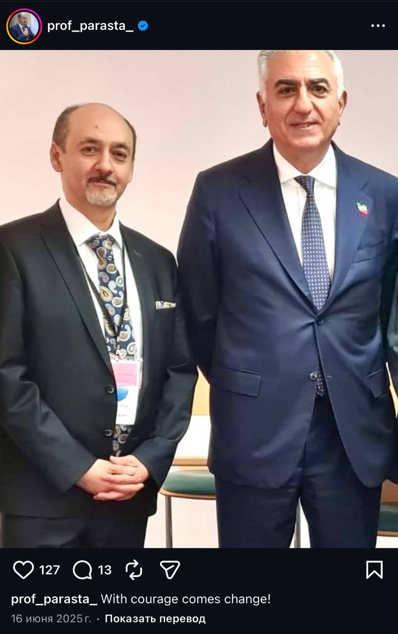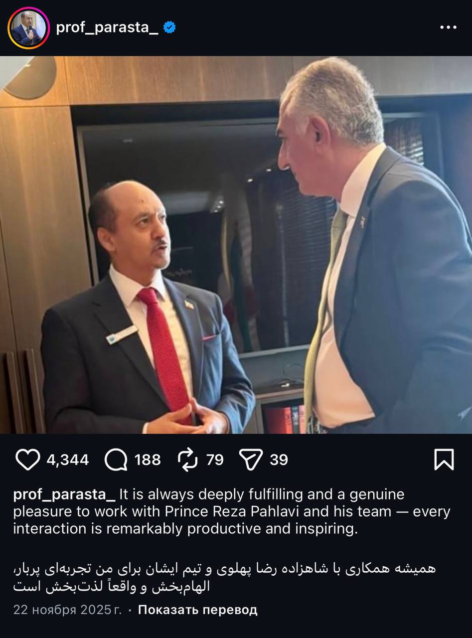 По удивительному стечению обстоятельств, можно легко найти фотографии Амира Парасты с Резой Пехлеви; также Параста публиковал комплиментарные посты в адрес «шахзаде».
