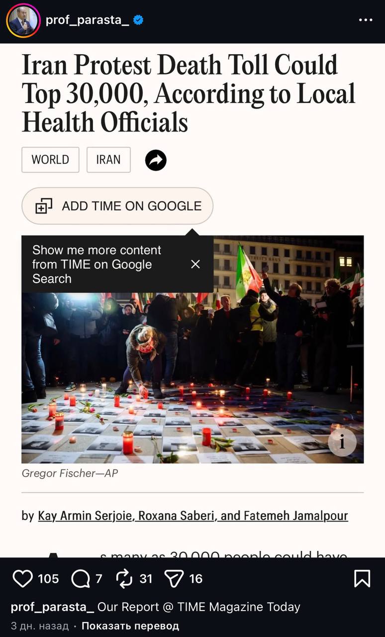 Откуда взялись цифры о десятках тысяч иранцев, убитых режимом во время протестов?