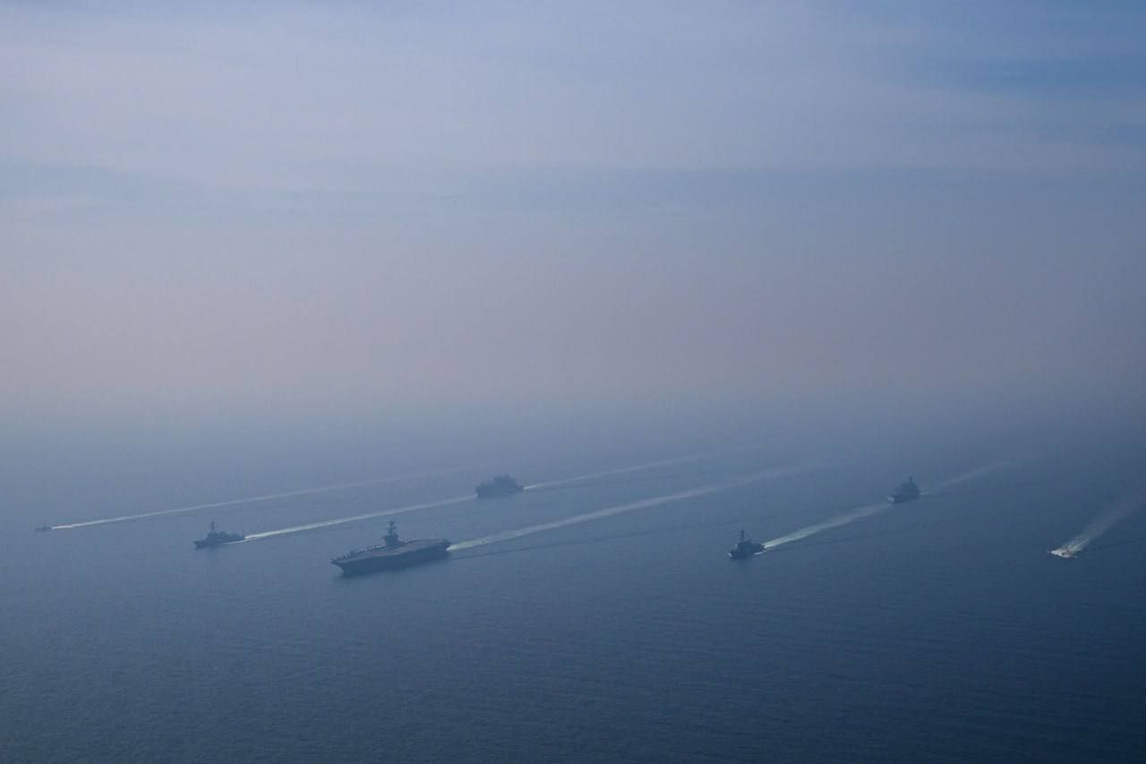 АУГ во главе с авианосцем продолжает находиться в Аравийском море. В качестве эскорта эсминцы USS Frank E. Petersen, Jr., USS Spruance и USS Michael Murphy.