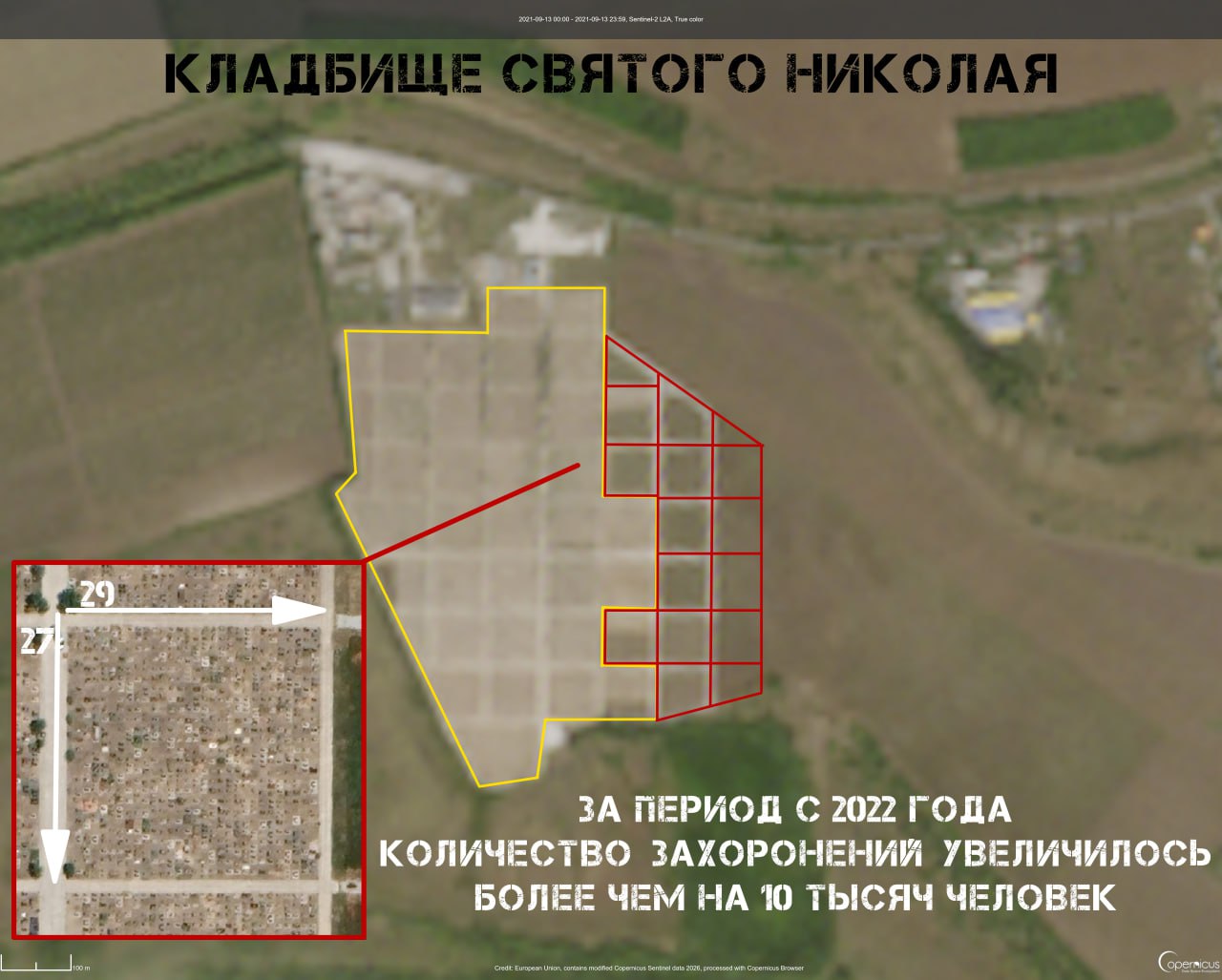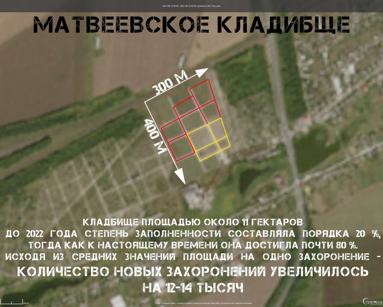 Начнем с Запорожской области. Мы смогли определить 4 кладбища, которые активно заполняются с начала СВО: