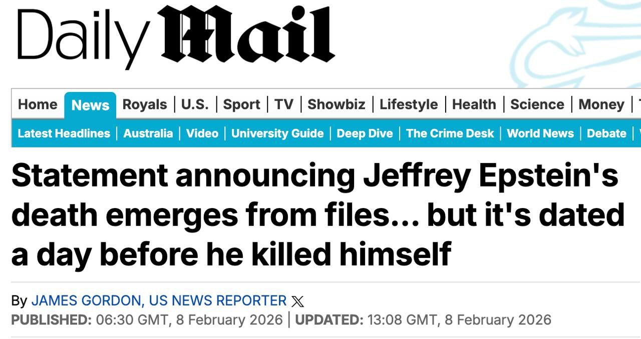 В деле Джеффри Эпштейна появились новые резонансные подробности: согласно публикации Daily Mail, в обнародованных архивных документах обнаружен черновик пресс-релиза прокуратуры о его смерти, датированный 9 августа
