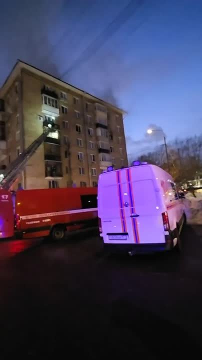 Мощный пожар бушует в многоэтажке в Пресненском районе Москвы