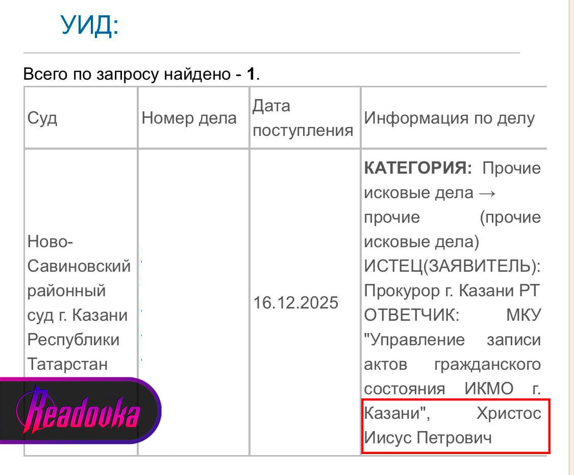 Суд Казани обязал Иисуса Петровича Христоса переименоваться в Евгения Петровича Чекулаева