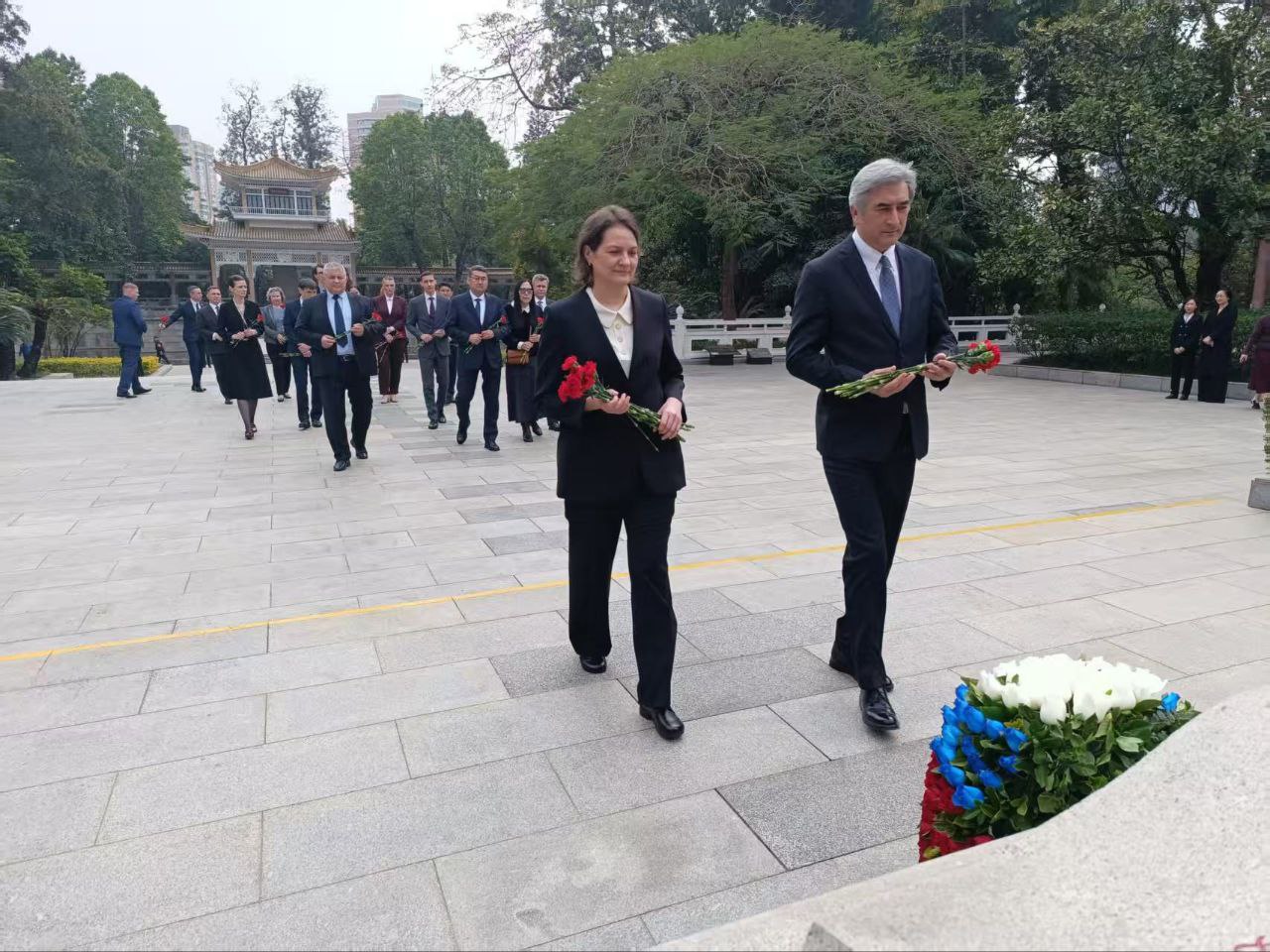 10 февраля с.г. в День дипломатического работника сотрудники Генконсульства России в Гуанчжоу провели церемонию возложения цветов к установленному в Мемориальном парке героев Кантонского восстания памятному знаку, посвященному советским дипломатам.