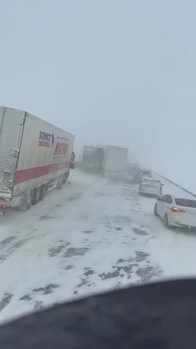 Огромные пробки образовались на трассе М-4 из-за метели и массовых аварий. СМИ пишут, что пострадали минимум 30 автомобилей.