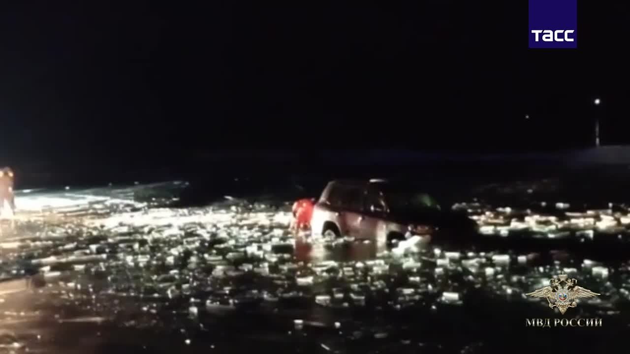 Ранее полицейские и спасатели обнаружили провалившийся внедорожник с женщиной и подростком. Их эвакуировали, а транспорт вытащили на лед и переместили на берег.