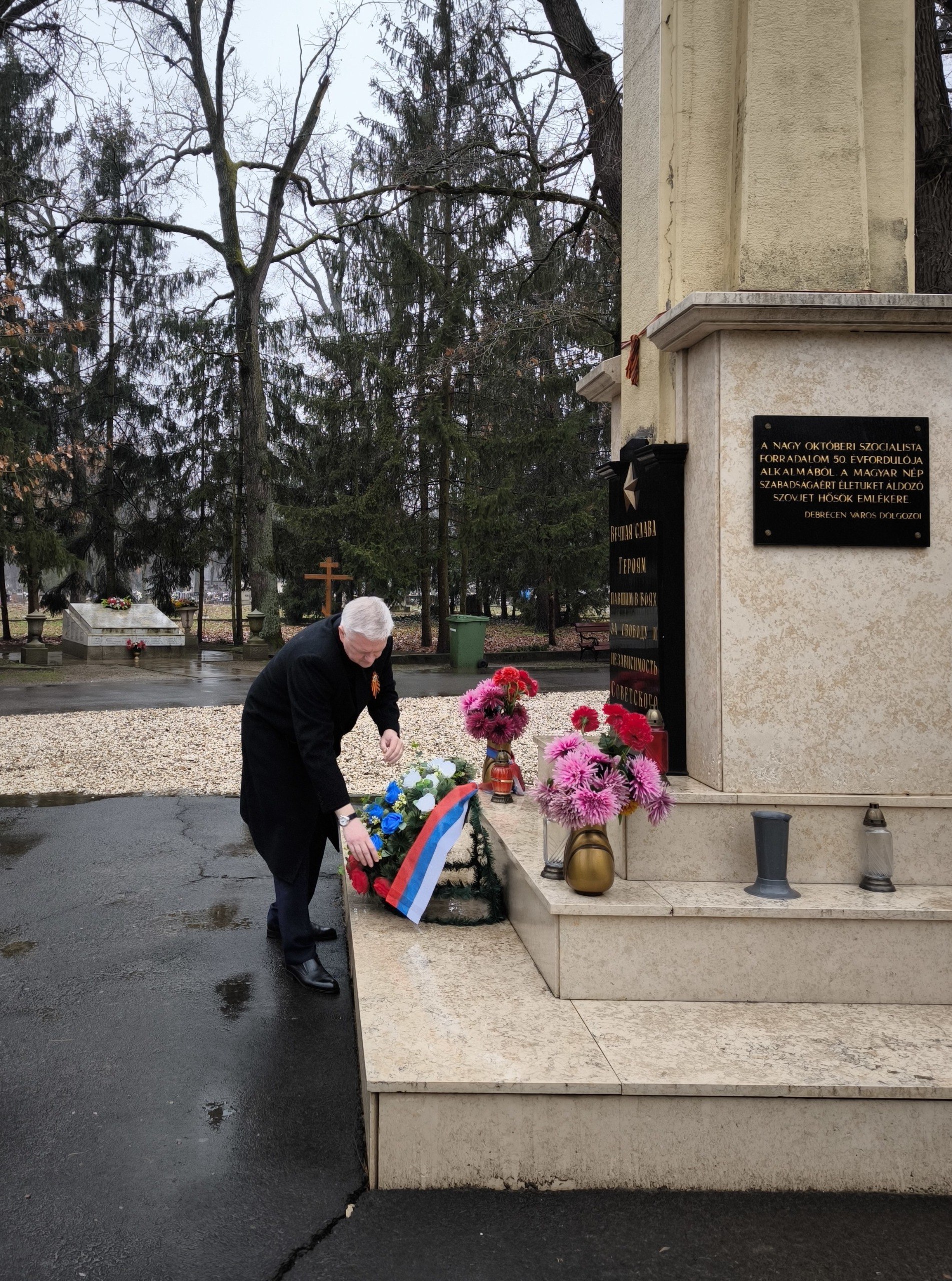 По случаю Дня защитника Отечества 23 февраля Генеральный консул России К.Драчевский, сотрудники РЗУ и соотечественники приняли участие в прошедшей на центральном кладбище Дебрецена торжественной церемонии возложения венков и цветов к мемориалу советским воинам, погибшим в годы Великой Отечественной войны на территории Венгрии.