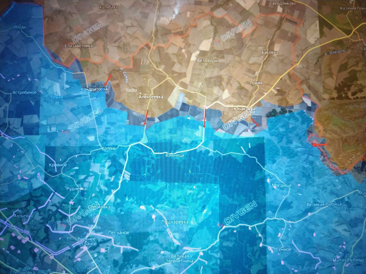 В последние дни обстановка для противника значительно ухудшилась в результате продвижения ВС РФ вдоль 2-х дорог в направлении рубежа обороны ВСУ Садки - Храповщина - Хотень (севернее Сум).