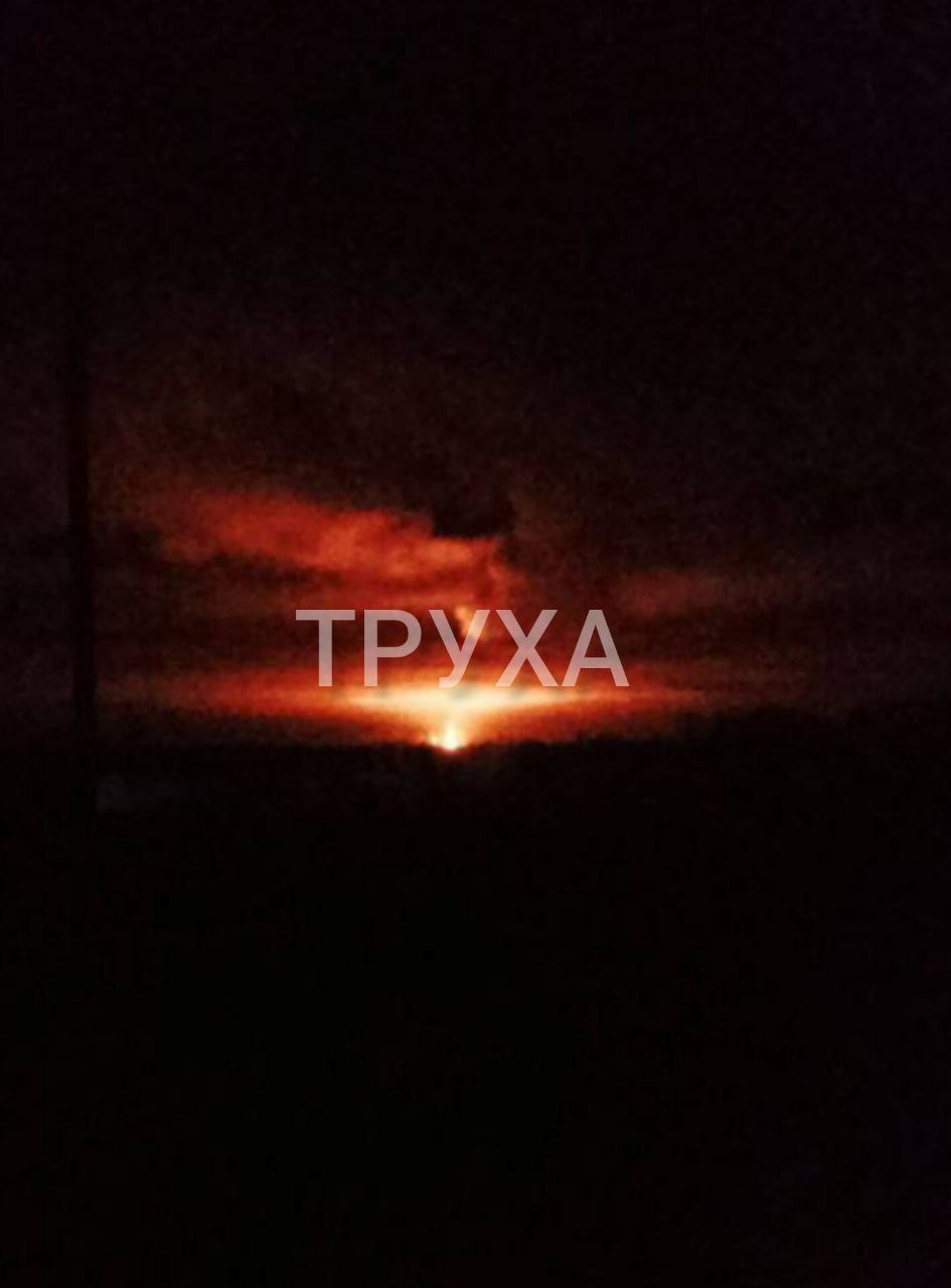 Сильный пожар в Черниговской области после ударов дронами по газовой инфраструктуре.