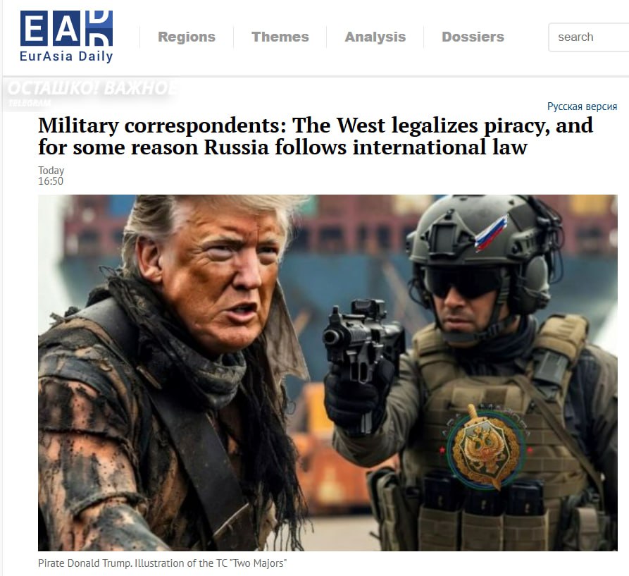 Военные корреспонденты считают, что Запад фактически легализует пиратство, тогда как Москва продолжает следовать международным правилам и сопровождает торговый флот своими кораблями, — пишет издание EurAsia Daily.