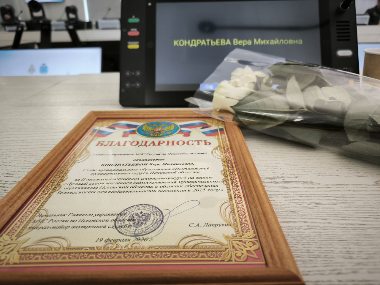 За высокие результаты в области обеспечения безопасности жизнедеятельности населения Псковской области в 2025 году, по итогам смотра-конкурса "Лучший орган местного самоуправления в Псковской области", Пыталовскому муниципальному округу была вручена Благодарность за 2 место.