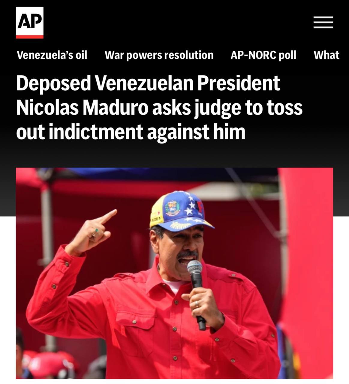 В материалах дела — личное заявление Мадуро: «Я не могу оплатить свою защиту из-за блокировки средств».
