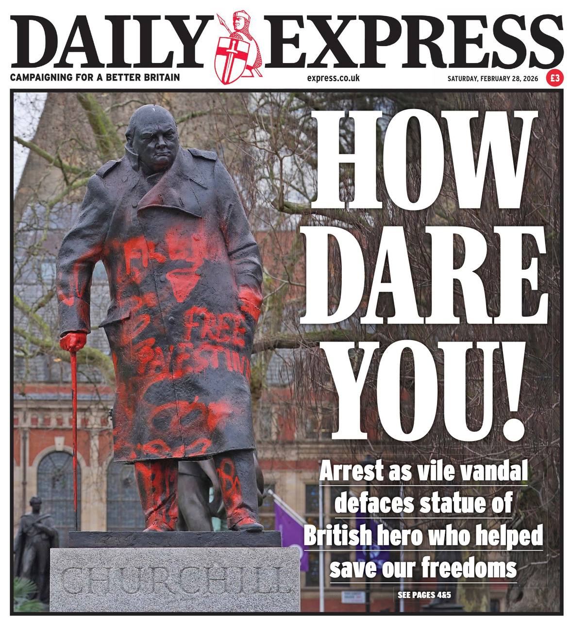 «Как вы смеете!» Английская консервативная пресса сегодня просто выходит из себя в связи с тем, что некие голландцы разрисовали оскорбительными лозунгами статую Уинстона Черчилля в Лондоне. Они написали, что он расист, сионист и военный преступник.