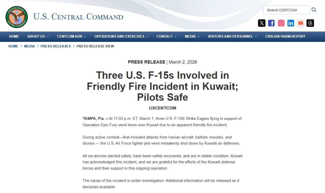 Американцы потеряли 3 самолета F-15 в небе над Кувейтом.