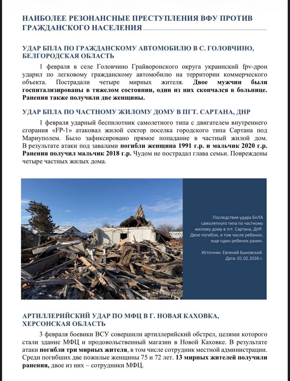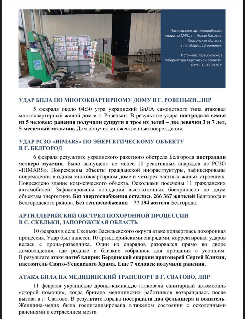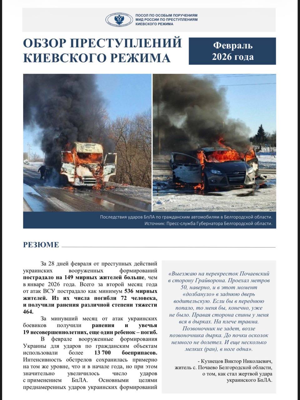 Публикуем доклад по преступлениям киевского режима в феврале 2026 года, подготовленный Послом по особым поручениям МИД России Р.В.Мирошником.