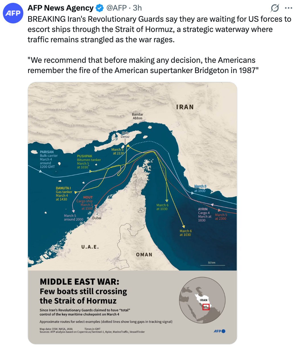 Корпус стражей исламской революции предупредил США о возможных последствиях попыток возобновить судоходство американских танкеров через Ормузский пролив. По данным агентства Франс Пресс, в Иране ожидают, что Вашингтон может направить военные силы для сопровождения судов через стратегически важный морской путь.