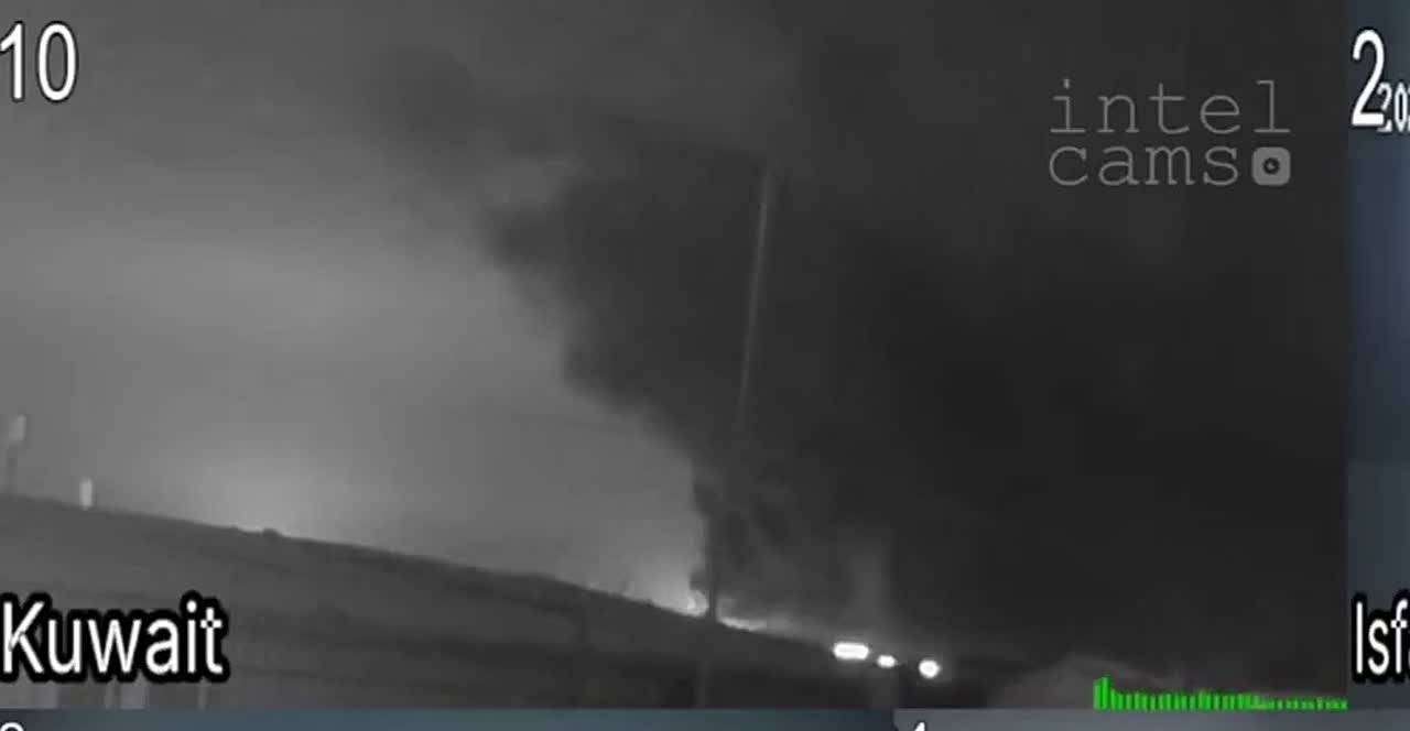 После удара "Шахеда" здание начало выгорать как высотка в Бахрейне.Американские солдаты снимают прилеты по своей базе в Кувейте.