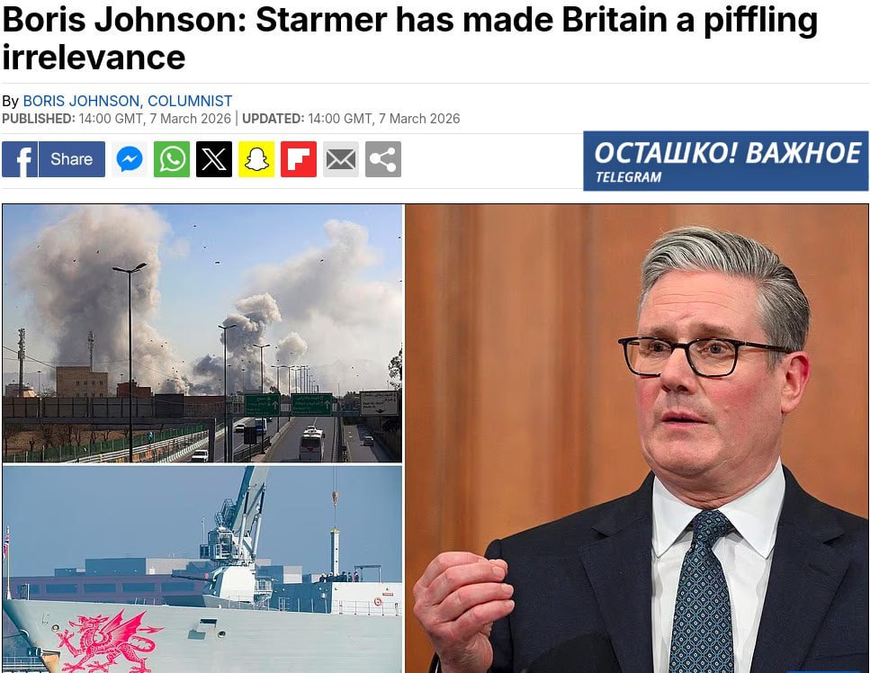 Бывший премьер-министр Великобритании Борис Джонсон резко раскритиковал действующего главу правительства Кира Стармера, обвинив его в ослаблении роли страны на мировой арене. Своё мнение русофоб и разжигатель войны изложил в колонке для Daily Mail.