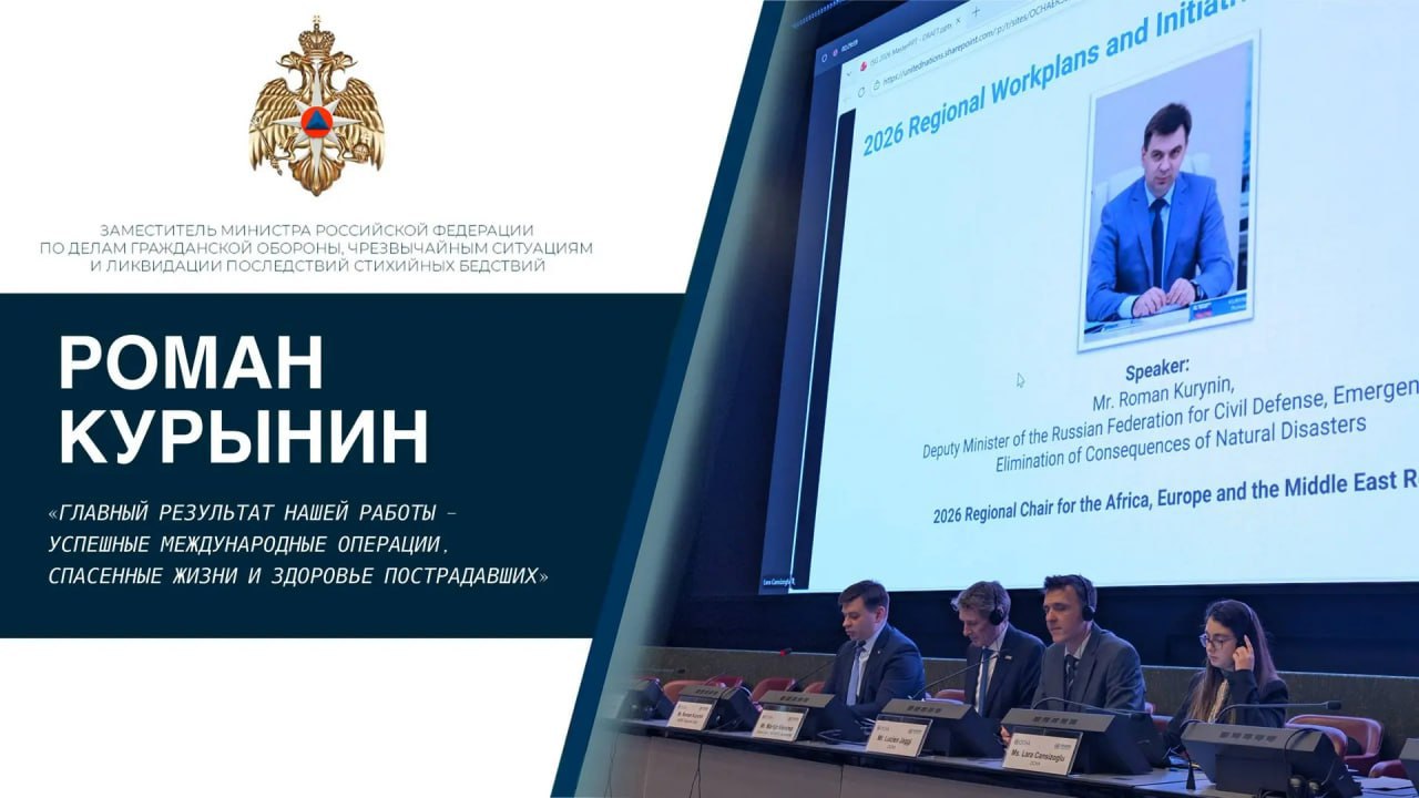 По поручению главы МЧС России Александра Куренкова российская делегация чрезвычайного ведомства во главе с заместителем Министра Романом Курыниным приняла участие в заседании Руководящей группы ИНСАРАГ в Женеве. Участники подвели итоги 2025 года и утвердили планы совместной работы на текущий год.