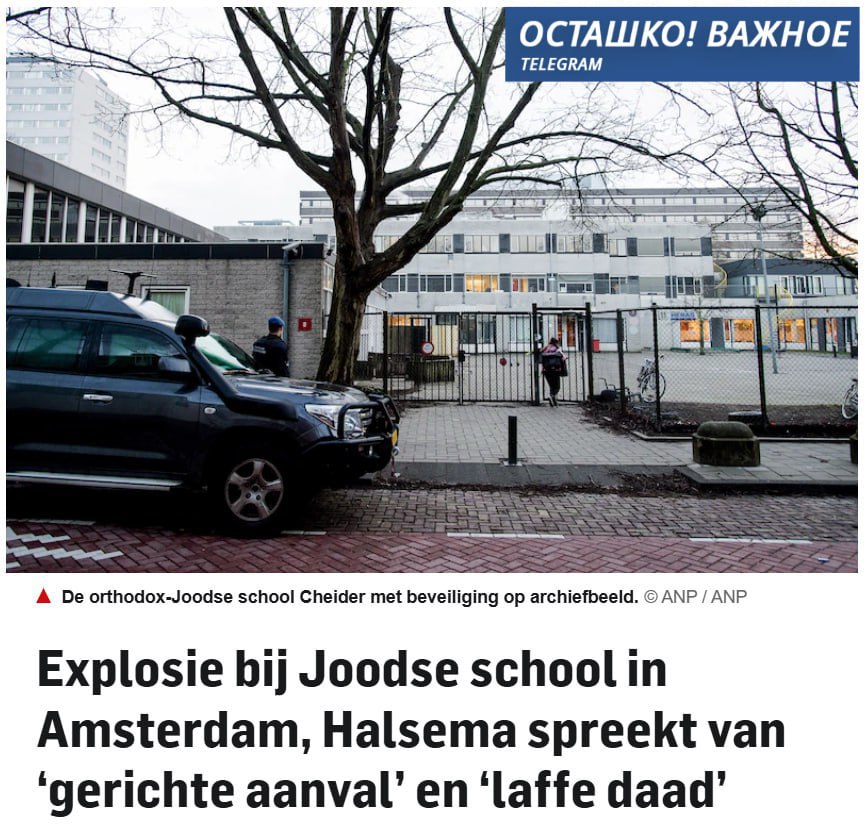 Взрыв у еврейской школы в Амстердаме: власти рассматривают инцидент как целенаправленное нападение