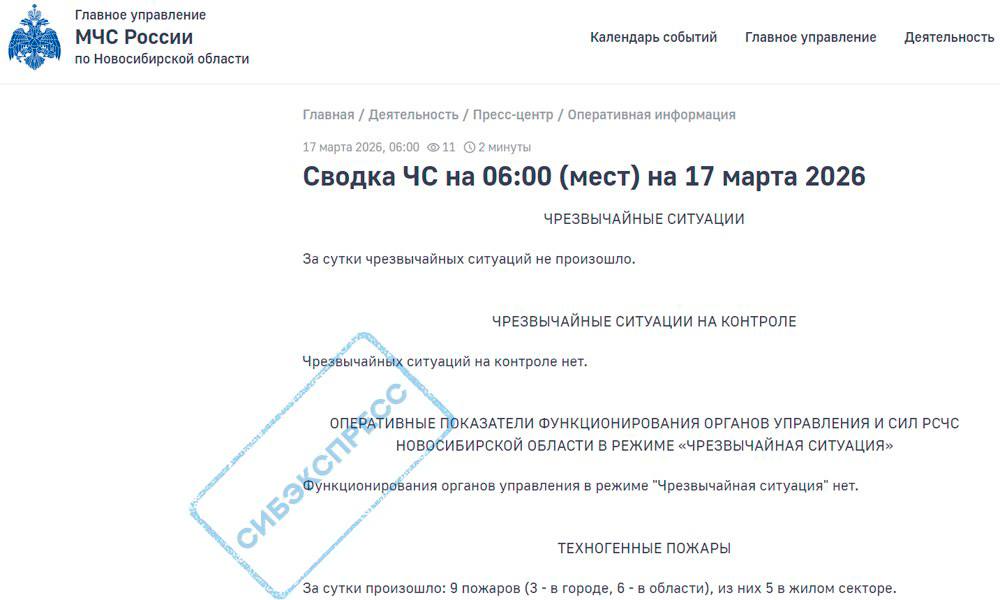 Чрезвычайная ситуация на контроле. Функционирования органов управление в режиме «Чрезвычайная ситуация» нет, - Новосибирское управление МЧС.