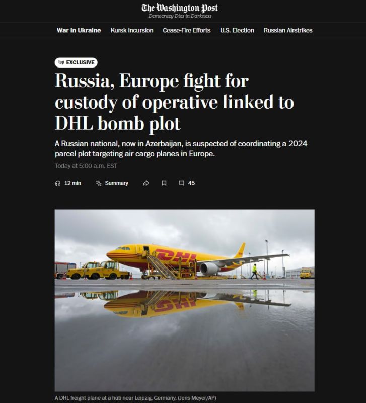 Баку не удовлетворил запросы ни Польши, ни России по выдаче Ярослава Михайлова, подозреваемого в организации поджогов посылок на европейских складах DHL в 2024 году, — пишет The Washington Post. Также Россию обвиняли в авиакатастрофе...