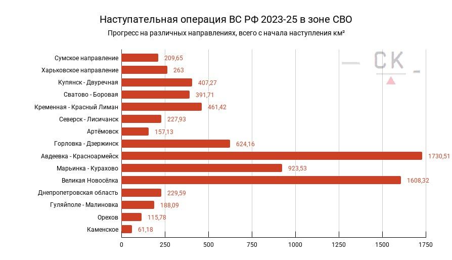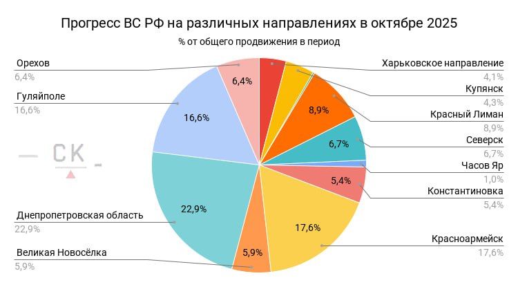 Инфографика интенсивности наступления ВС РФ в зоне СВО на различных направлениях к ноябрю 2025.