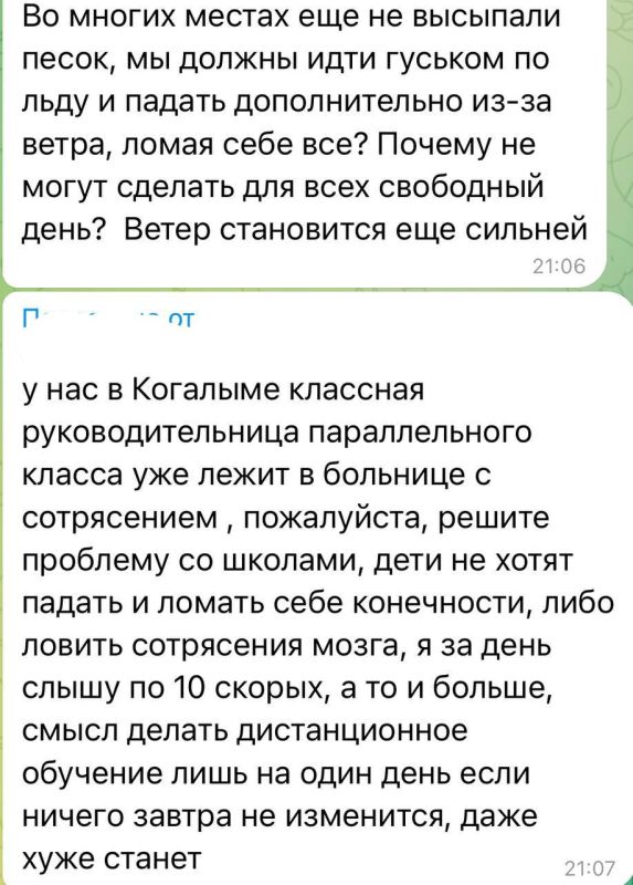 В Когалыме жуткий гололед из-за погодных условий. Люди падают, травмпункты переполнены. Но актировки в школах на завтра пока нет, как пишут школьники. Надеюсь, что с утра вопрос решится. Опасно вообще