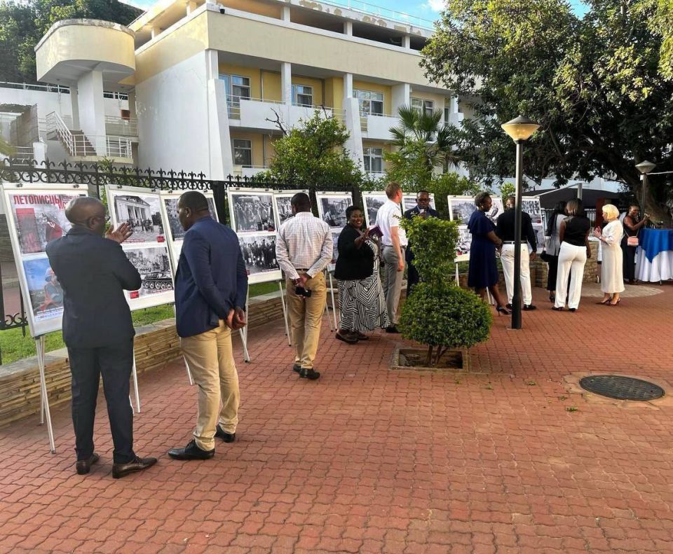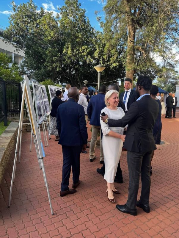 На приеме были традиционно развернуты фотовыставки, включая экспозицию архивных материалов, посвященную 35-летию дипломатических отношений России и Намибии.