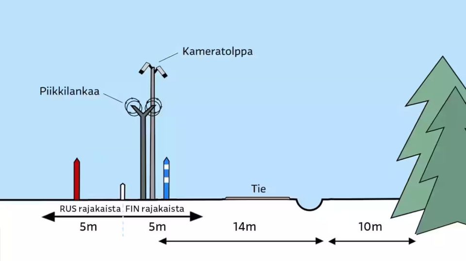 Финляндия строит 4,5-метровый пограничный забор всего в одном метре от российской территории. Каждые 20 метров — камеры и датчики. Верхний метр конструкции — колючая проволока, часть барьера уходит под землю «на достаточную глубину», — пишет Yle.