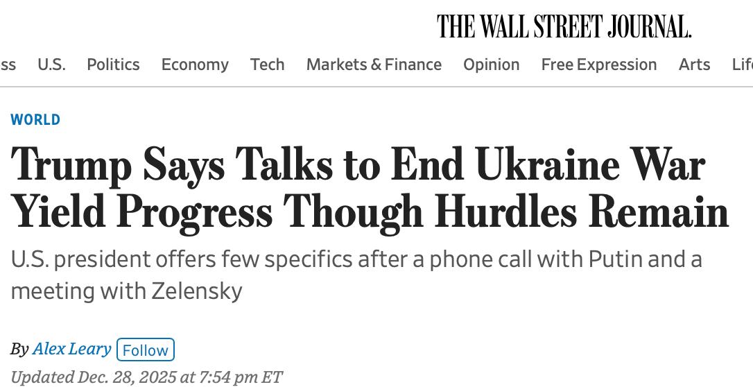 The Guardian пишет, что, несмотря на «позитивную риторику», реальных признаков скорого соглашения не видно. Ключевые вопросы – территории и гарантии безопасности – так и остались нерешёнными.