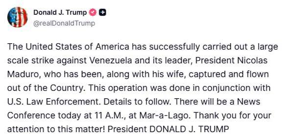 Бразилия официально признала Делси Родригес временно исполняющим обязанности президента Венесуэлы. Также сообщается, что в результате нападения США на Венесуэлу погибло более 40 человек. Десятки получили ранения.// Сolonelcassad